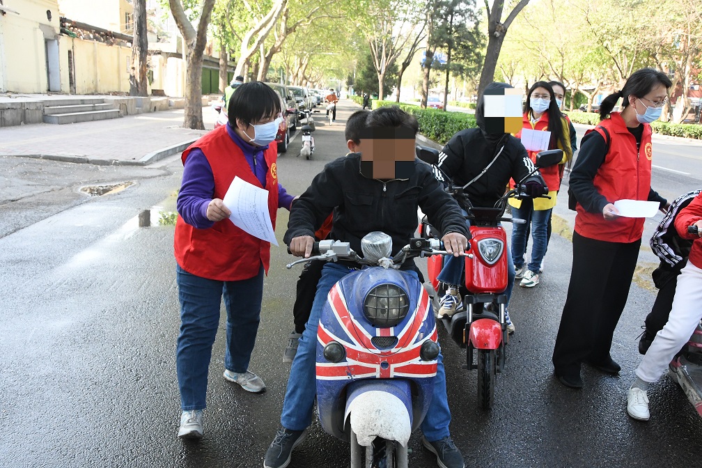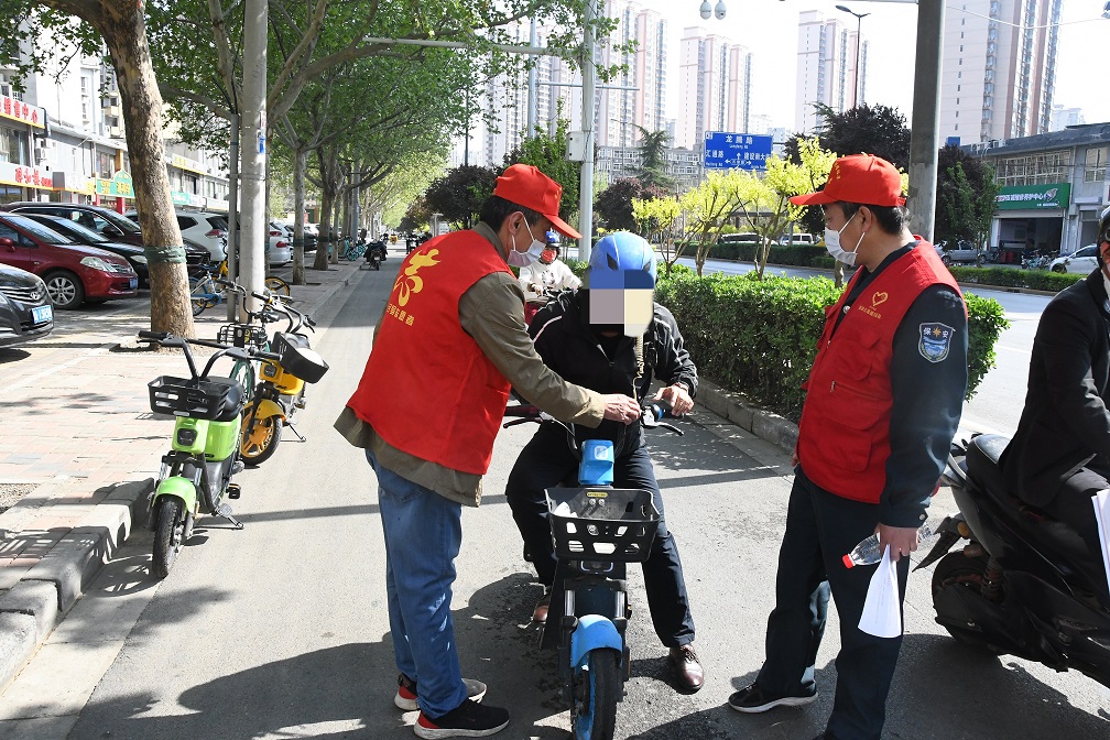 活動期間,志愿者身著紅色志愿服,根據分工安排,在兩個小區門口協助門衛不厭其煩地對未戴安全頭盔的行人進行勸導:出行時要正確佩戴安全頭盔,告知其各類違法行為的危害及后果,督促其立即改正;對尚未登記上牌的電動自行車車主進行提醒:到公安交管部門設置的登記上牌網點辦理登記備案業務。他們以高度的社會責任感和昂揚的精神面貌展現出了我隊的良好形象,詮釋了志愿服務的精神,也為城市增添了一道靚麗的風景線。